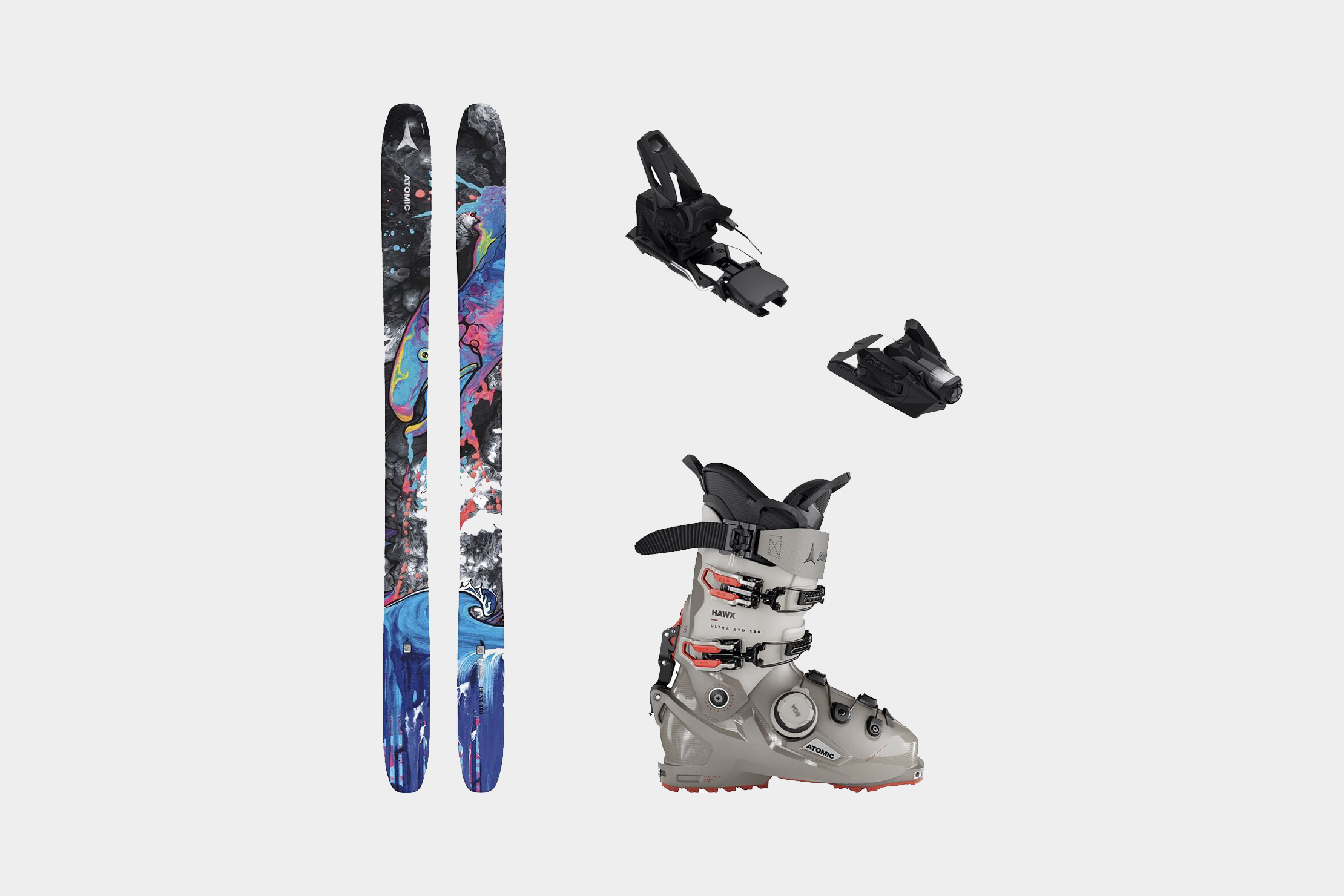 Whether you’re into tight tree turns in deep pow or want a ski that can venture into the side country, this sweet freeride setup will get you kitted out in style. Sporting a 110mm waist and a floaty rocker/camber/rocker profile, the Atomic Bent 110 Skis will help you crush big descents on serious powder days.